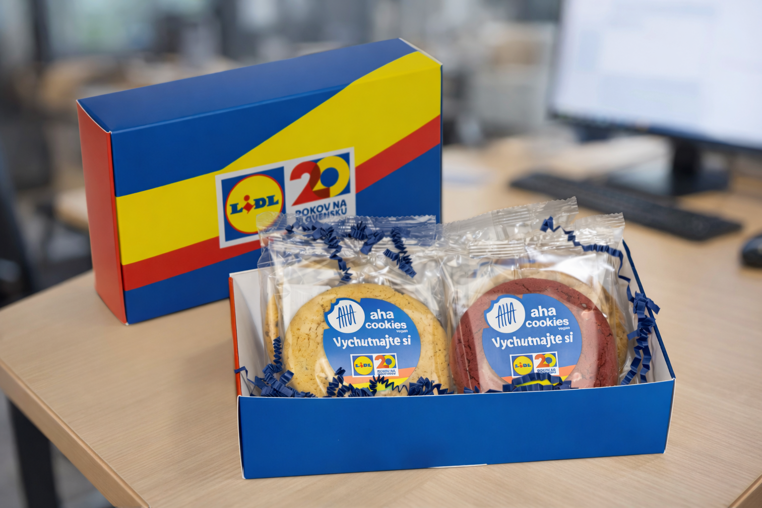 Minimální objednávka je 10 balíčků. Naopak – bez problémů zvládáme i větší zakázky. Naše dosud největší jednotlivé firemní projekty dosahovaly přibližně 20 000 cookies.